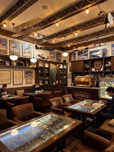 Café Chakrulo is an aviation- and space-themed café conceived as a living museum, inspired by the personal journey of Ramaz Bluashvili and filled with historic aircraft artifacts, cosmic imagery, and human stories of exploration. It is a place where coffee becomes a gateway to humanity’s dream of reaching the stars.